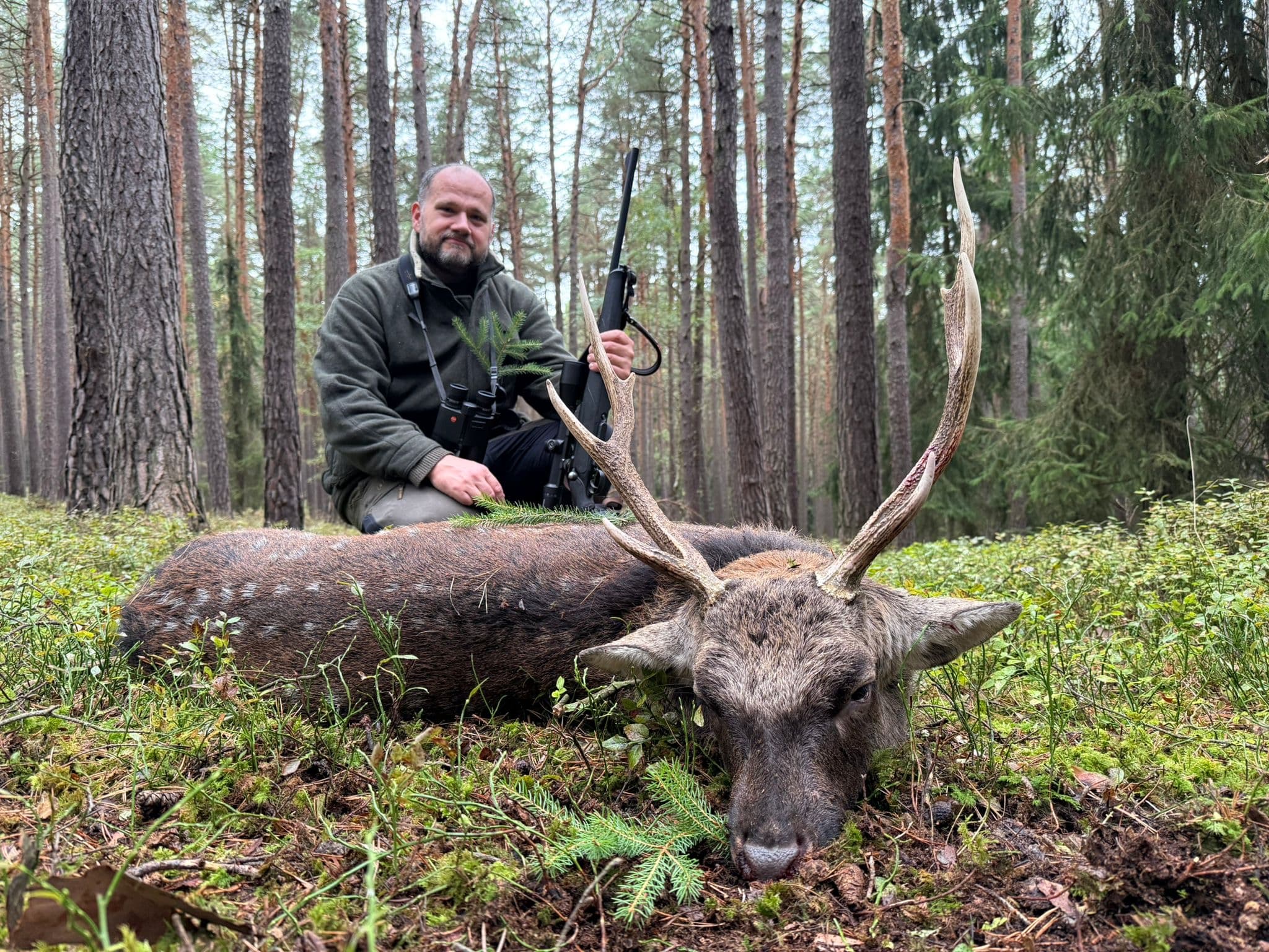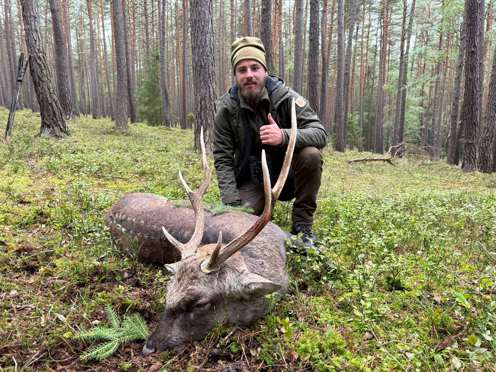 Sika hunting is all about patience and silence. The best method is from a high seat or slow stalking in the forest. The rut offers intense moments with loud calls echoing through the woods. These hunts are guided and carefully planned to ensure success and full respect for the animal.